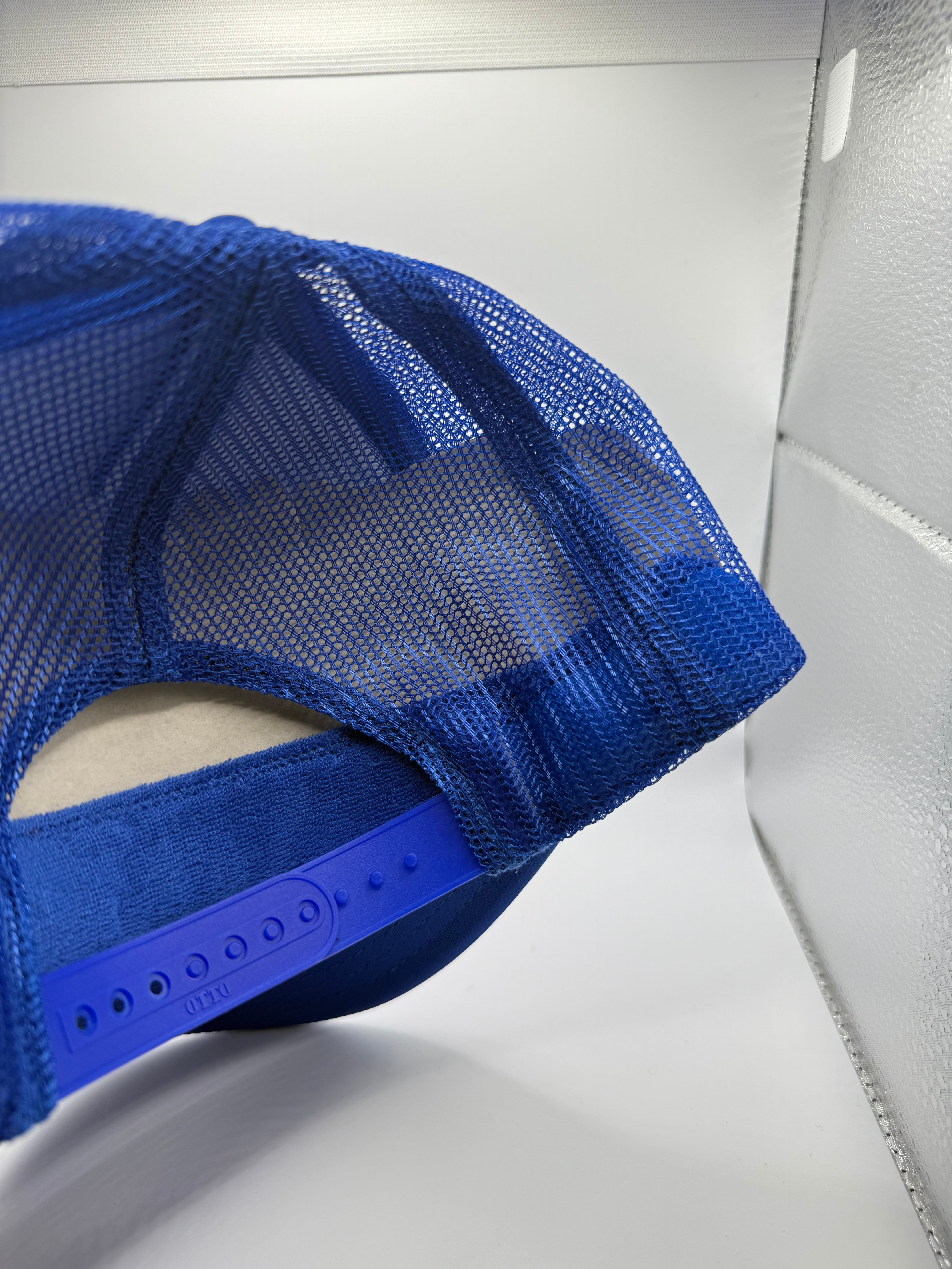 立体的な刺繍ロゴと通気メッシュ構造が特徴。